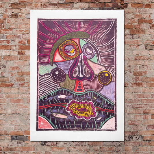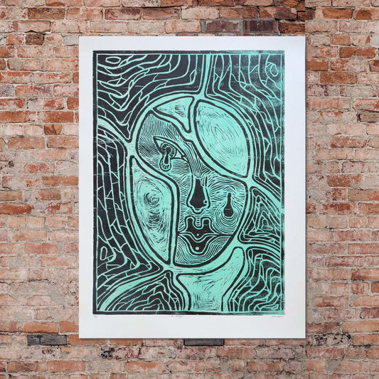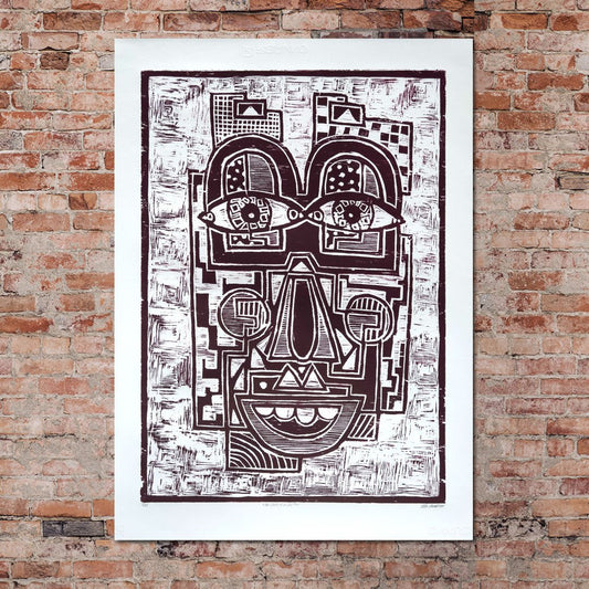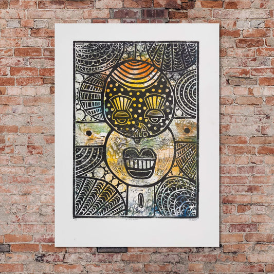 The series consists of woodcut prints, digital artworks, mixed media and mosaic. Many of the wood cut prints are hand printed. The ink used is Speedball, Professional Relief Ink and it printed on Fabriano Artistico cotton paper.