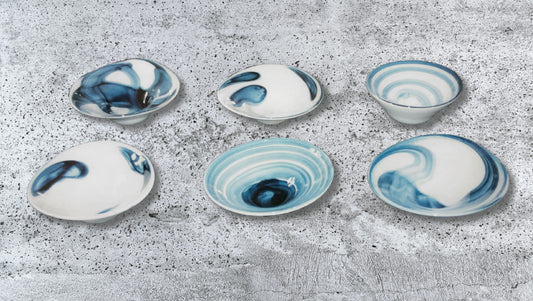 Glass Art Portfolio - Black and White Patterned Bowls on small glass standing