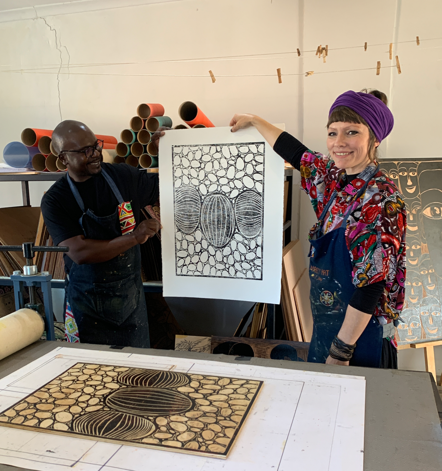 Interaction and collaboration fosters learning, creativity growth and wisdom. Throughout decades Elin has been interacting closely with international and local creatives, designers and artists. This photo was from a collaboration with artist Ezequiel Mabote.